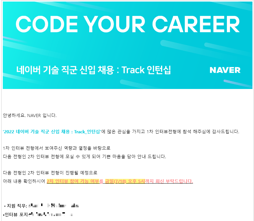 인터뷰는 7월 13일에 진행했고, 결과는 7월 18일 3시에 전달 받았다.